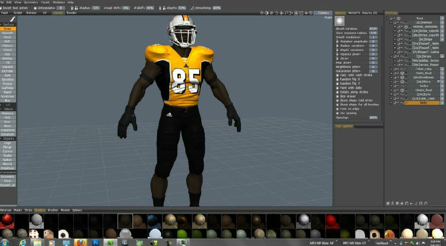 2、只需导入一个低精度模型,3D-Coat便可为其自动创建UV,一次性绘制法线贴图、置换贴图、颜色贴图、透明贴图、高光贴图