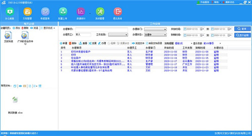 工作安排:制定事件任务,也可以为文档制定处理任务;支持到期提醒功能和逾期查询功能"。办公文档管理系统-办公桌面