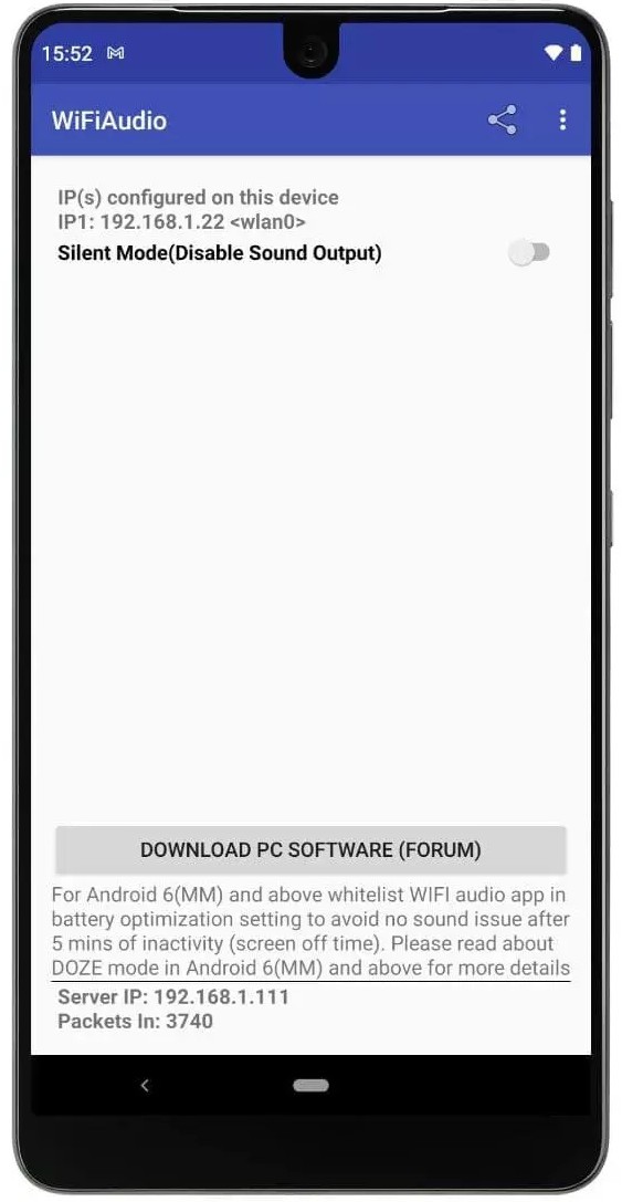 当我们想要听电脑中的声音但是却没有耳机或者播放音箱时,就可以使用这款 WiFiAudio 软件来进行音箱模拟的操作,软件功能强大,支持将手机和电脑连接,从而帮助用户播放电脑设备的声音,通过将手机模拟成无线音箱来对声音进行播放,非常的非常方便非常实用,还可以省去买音箱的花费。