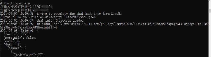 给定小米的帐号、密码,登录小米云,