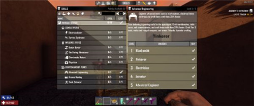 游戏有一个较完善制作系统,可以用来制造近战武器、枪支、陷阱、发电机、电动工具、地雷、炮塔、药品、食物以及家具等。武器以及工具都有质量水平的划分,质量越高,耐久和属性越高。换言之,玩家可以升级他们的制作能力来制作更好的物品,也可以升级烹饪能力来做出更洁净的食物和水。