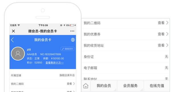 微信公众号注册会员卡,实现在线充值,积分,打折,消费查询,信息推送,非常方便快捷