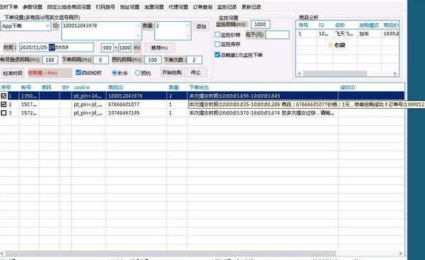 软件整合了京东、淘宝、苏宁等多个平台,能够帮助用户轻松抢购商品,非常的非常实用,操作起来很简单,只需将账号密码输入到软件中即可,支持定金抢购的功能,可以让用户进行多账号多商品id同时抢购!