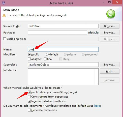 会弹出一个窗口。Name栏必填,在public static void main(String[] args)栏打对号,点击Finish,完成