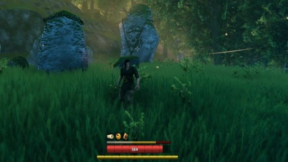 站在玩家视角,刚刚进入全新的游戏世界时,多少都是懵逼的。即便是生存游戏老玩家,第一反应除了“要想富,先撸树”之外,对于接下来要做什么也没有清晰的头绪。所以在游戏早期阶段,一只名为福金的乌鸦NPC会提供各种指导。每当玩家获取了新的物品时,它就会出现在附近,并告诉玩家此项物品的功能,或者提示一些合成公式。当玩家第一次进行某个动作,比如跳跃、游泳时,游戏立刻会显示该技能升了一级。于是玩家会立刻明白,要想提升某项技能等级,只需要多做这件事情。