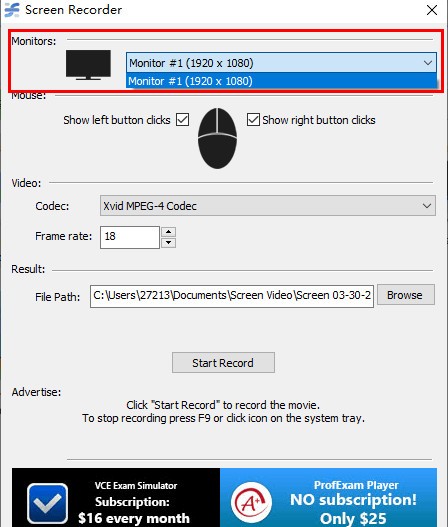 只需启动该应用程序并选择编解码器,然后选择要录制视频,然后单击开始录制即可。