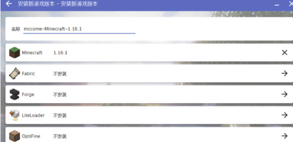 以Minecraft 1.15.1版本为例,如下图,给游戏起个喜欢的名字,点击下方的安装,游戏就开始下载了;同时如果需要安装Fabric、Forge、LiteLoader、OptiFine的话,可以选择其他四个选项安装。