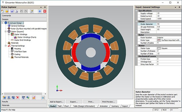 允许根据输出要求和电源电压快速确定电动机设计的初步尺寸(此阶段不涉及FEA)