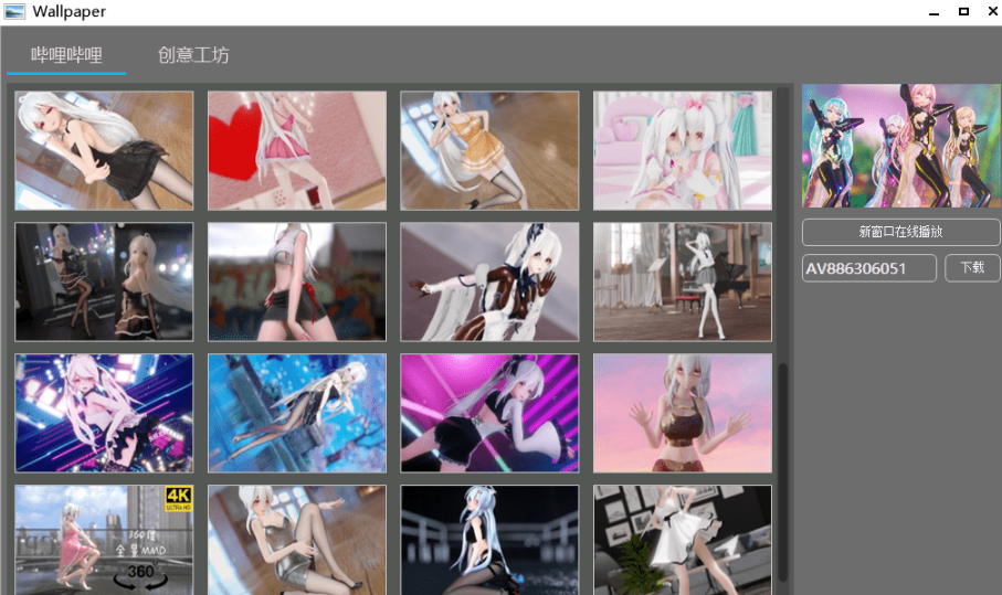 Wallpaper Windows10动态壁纸由网友原创制作,有时候我们在B站上面看到好看的视频或者动态图片,想要用作电脑壁纸,就可以通过这款软件来进行获取,轻松帮助用户下载B站以及创意工坊中的视频,支持自行选择下载,包含搜索的功能,让用户找到想要的素材,让桌面变为动态的效果!