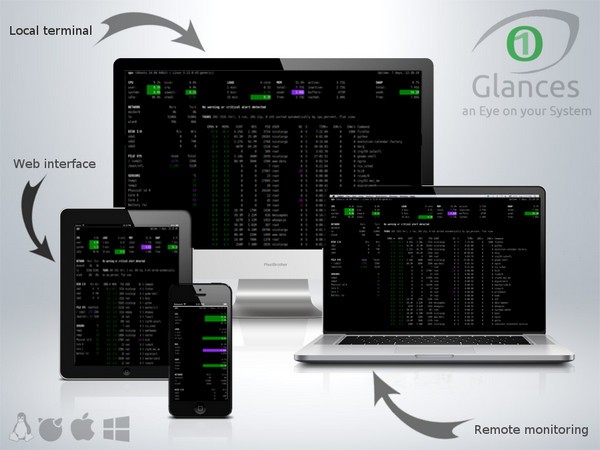 用Python编写,Glances几乎可以在任何平台上运行。GNU/Linux、FreeBSD、OS X和Windows。