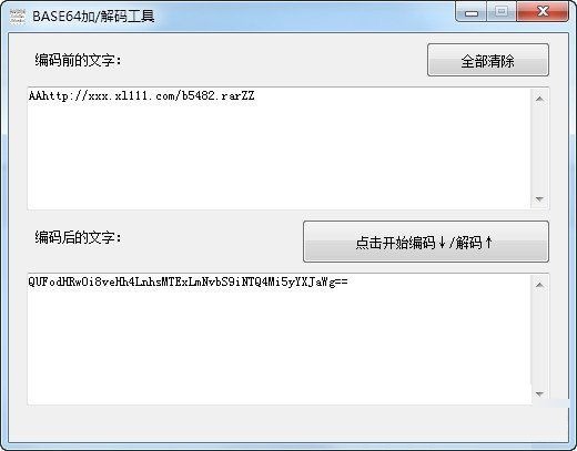 把斜杠后面的这段,复制到待解码区,就是后面这段: QUFodHRwOi8veHh4LnhsMTExLmNvbS9iNTQ4Mi5yYXJaWg==