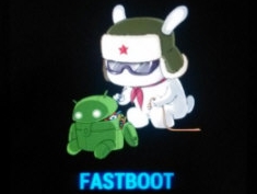 6:接下来手机要进入FastBoot模式,进入的方法:在手机关机状态下,按住音量键-和电源键,当屏幕中出现一只米兔正在修安卓机器人则已经进入FastBoot模式