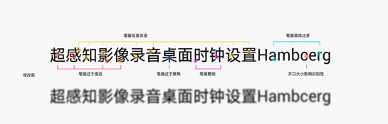 在不同设备的应用场景下,字体的灰度会影响在弱光环境、小字号、远距离下的识别性。因此我们优化字体的灰度,让新字体在不同场景下具有更好的识别性和阅读体验。