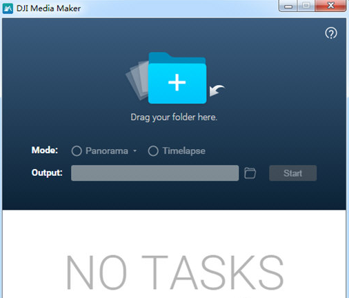 3、DJI Media Maker将自动识别全景或延时摄影照片并配置输出路径。请检查处理模式以及输出路径是否正确(可以手动更改),确认后选择“开始”进行合成。DJI Media Maker可以同时添加多个任务,一次只执行单个任务。