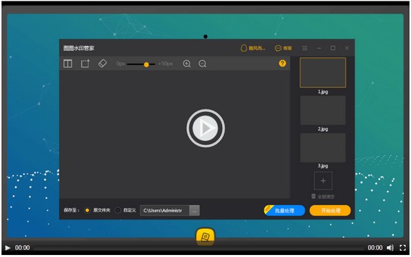 软件提供照片去水印的功能,可以快速处理图片中的各种水印和瑕疵,支持多种格式的图片,采用了智能的处理方法,一键即可清除水印,同时还能够批量处理图片。