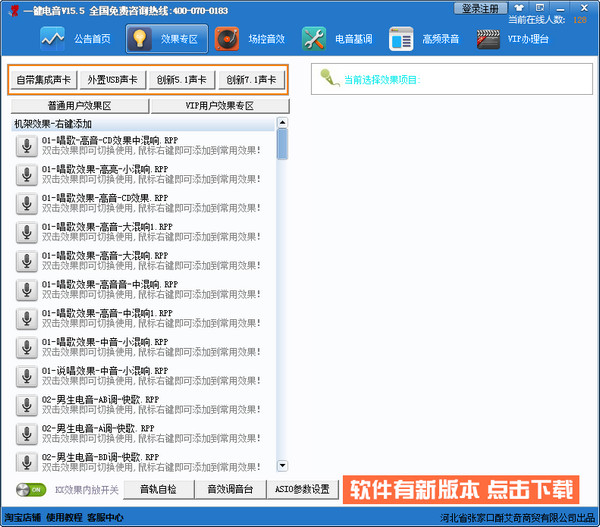 3.集成声卡用户开发了一套,板载声卡电音,喊麦,变声,环绕,K歌,电话音,的音效处理软件