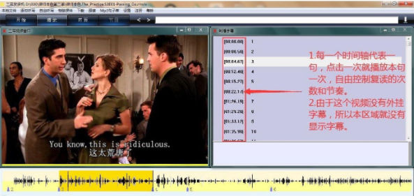 3,一键复读,轻松流畅:据波形判断,鼠标一点,不论长短,随意复读。更有多种复读方式可以选择,任由使用者根据学习资料的特点和习惯,选择方法,自由组合,轻松操作,非常容易上手。
