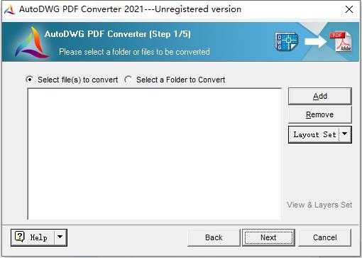 PDF至AutoDWG DWG to PDF Converter 2021版本支持批量转换,请在安装文件夹中运行程序,然后添加要转换的文件