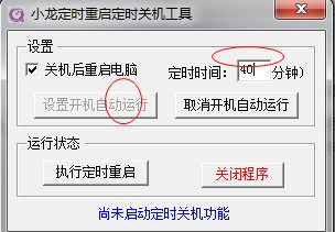 按照给定的分钟数定时关机或定时重启。可以设置重启后自动运行并启动定时重启。