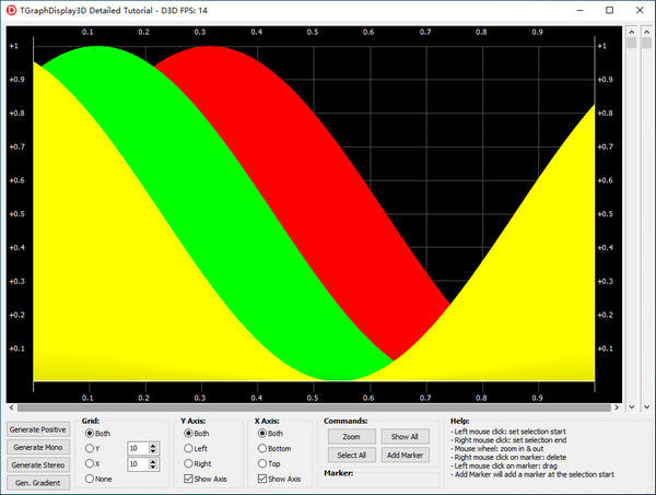 TGraphDisplay3D 不但可以用来实现图形化的编程操作,还为用户提供了强大的数据显示功能,软件是一个Delphi的组件,可以帮助用户以直观的方式查看图形和音频的样本数据等等,非常的专业强大,支持用户对图形的大小进行自定义调整,颜色也能自由设置,还能为图形添加标记。