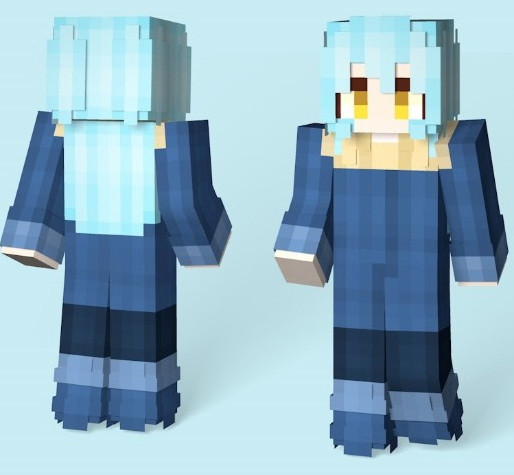 我的世界萌王利姆路皮肤MOD能够在我的世界中添加非常多的人都在使用人用的一款好看的新皮肤,补丁的作者将动漫作品《史莱姆转生的那档事》中的主角萌王利姆路制作添加到了我的世界中,玩家使用之后就可以获得一个新的人物形象,她是一个可爱的萝莉形象,有着蓝色的长发和深蓝色的长袍服饰,外观如下。