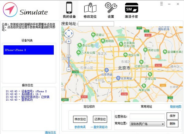 平时使用一些软件可能会受到地域的限制,又或者游戏应用中显示了自己不想要的城市定位,这些情况下就可以试试小编带来的这款 simulate 软件,软件能够帮助用户对手机定位进行修改,适用于苹果手机的用户们,轻松就能实现手机的定位信息修改,让位置显示为自己喜欢的地方。