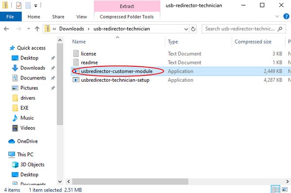 这可以通过下载、电子邮件或其他方式来完成。客户模块可以在您之前下载的 USB Redirector Technician Edition 包中找到。