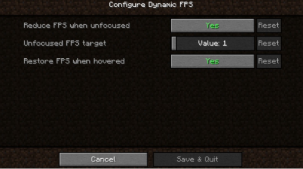 我的世界1.17.1动态FPS帧数MOD,这款补丁的作者对我的世界进行了优化处理,补丁功能非常实用,玩家安装之后就能优化游戏内的动态FPS帧数,当游戏未聚焦或最小化时会大幅度降低游戏的帧数,从而降低系统内存的占用,让系统运行的更流畅,很适合在挂机或者暂时离开游戏的时候使用。