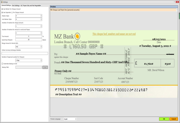 MSTech支票(支票)打印支持所有货币,并且可以在任何国家/地区用于打印支票(支票)。