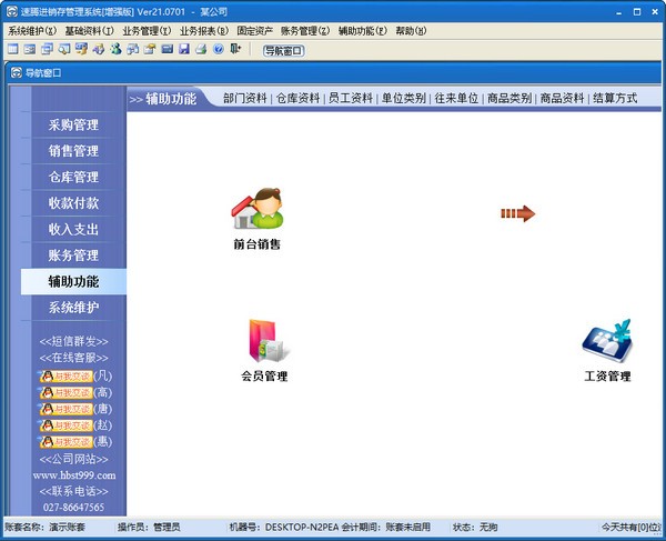 短信群发、员工提成、捆绑销售、赠品管理、促销管理、定价管理、会员管理、往来账款管理、固定资产管理、工资管理等