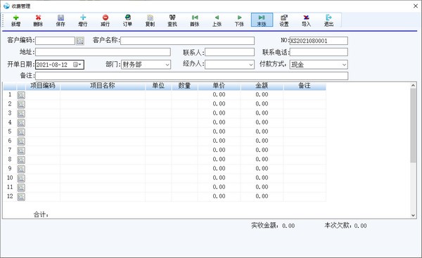 收据管理,用于查询以前开出的所有单据,可以进行查询、修改、删除、审核、打印。反审核时,需要弹出密码,如果您没有改过,那默认密码是1,可以在系统管理参数管理中修改。