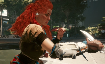 赛博朋克2077Aloy替换VMOD可以对赛博朋克2077中的人物形象进行替换修改,补丁的作者将来自《地平线:零之曙光》的Aloy人物制作添加到了赛博朋克2077中,现在玩家可以使用Aloy进行战斗,这是一位红色头发的女性角色,形象比较火辣,人物制作得非常精致还原,造型如下图所示。