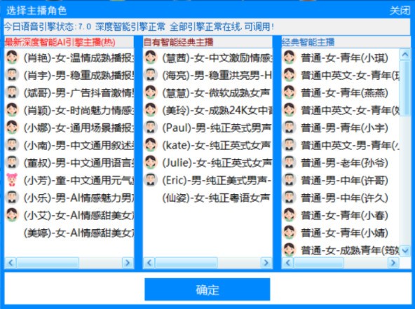 二、软件音色丰富且发音流畅自然,全独家知识产权虚拟真人主播陆续上新中,不断为我们的客户最新,最全,最自然的语音合成效果!