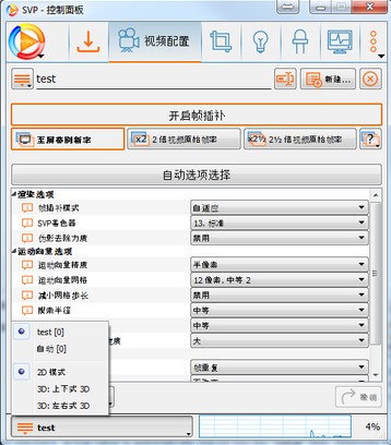 视频一开始播放,SVP选择最合适的设定档并采用它的参数来计算中间帧。为实现设定档的自动选择,SVP使用每一个设定档中指定的设定档的使用条件(请参阅设定档的使用条件部分)。