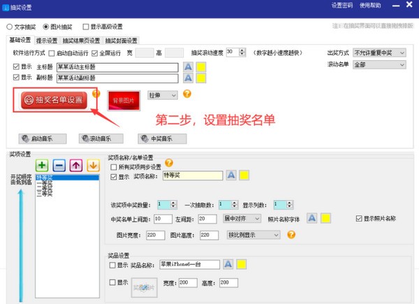 1、支持由数字、字母、中文汉字混合的姓名、手机号、身份证号等各种名单;支持图片照片抽奖;
