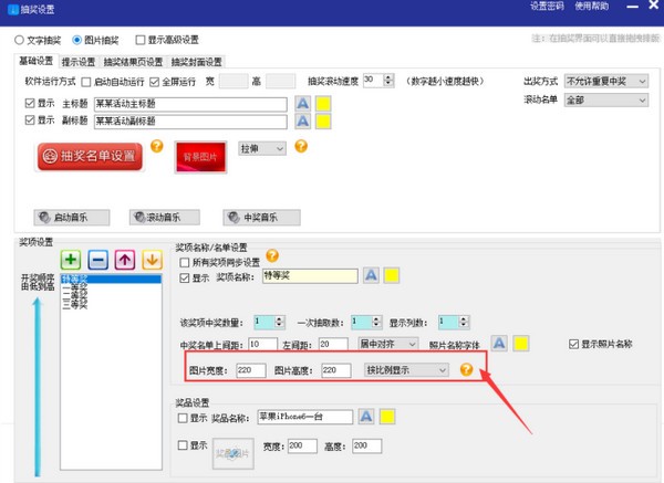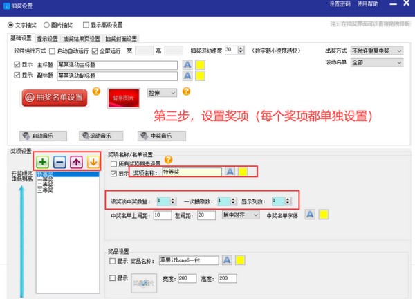 18、支持自定义界面,界面所有部件(标题、中奖人等)的字体大小、文字、颜色、位置、背景等都可手动或自动调整;