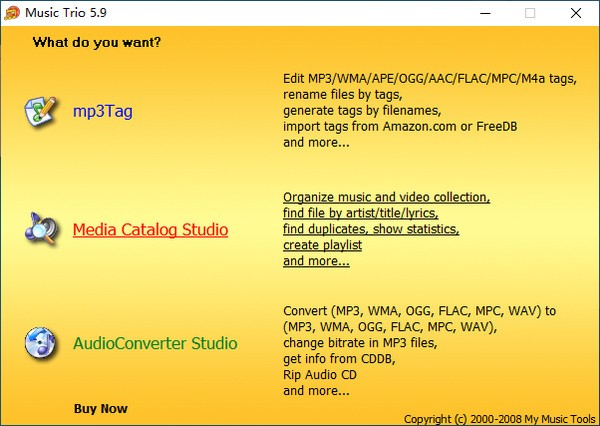 Music Trio(音频管理与处理工具)软件所展示的资源内容均来自于第三方用户上传分享,您所下载的资源内容仅供个人学习交流使用,严禁用于商业用途,软件的著作权归原作者所有,如果有侵犯您的权利,请来信告知,我们将及时撤销。