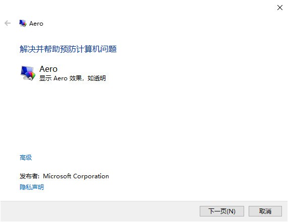 7、按照软件的步骤就可以立即对你的Aero错误情况修复