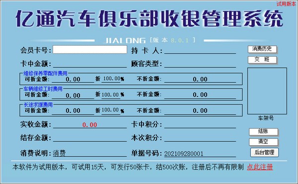 亿通汽车俱乐部会员管理系统 v8.05下载