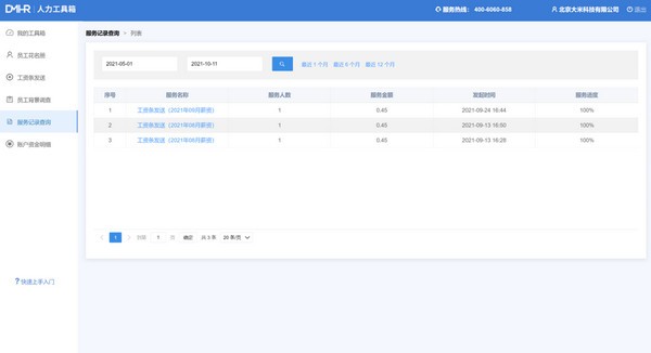 2、行业独创更灵活的结算方式,给企业更多优惠。较传统电子工资条软件的按年付费和线下背景调查的高价格,多米人力工具箱采用“按量付费”方式,用多少充多少,为企业提供更优惠更具性价比的服务。以工资条为例,发1条收1条费用,不发不收费。