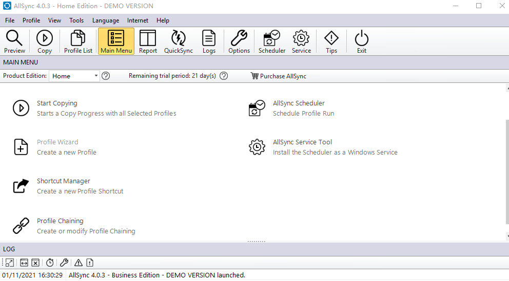 配置文件——在两个或多个文件夹之间进行复制操作所需的所有设置都由一个概要文件中的AllSync存储。