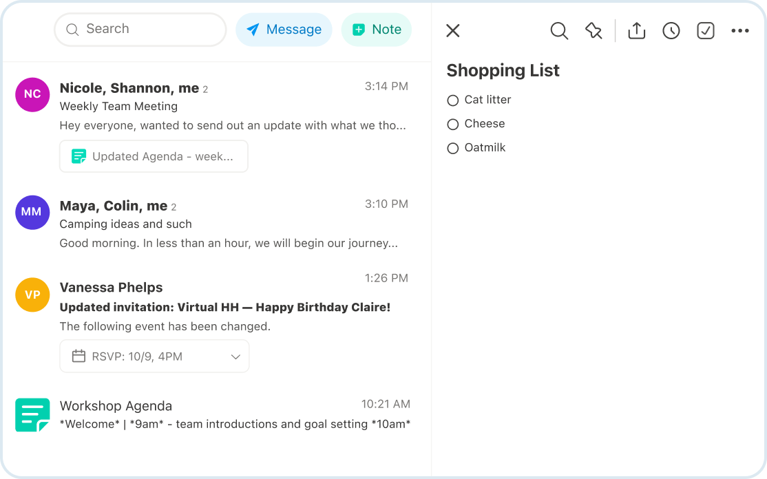 共享笔记可以嵌套在电子邮件中,以便您实时查看每个人的想法。
