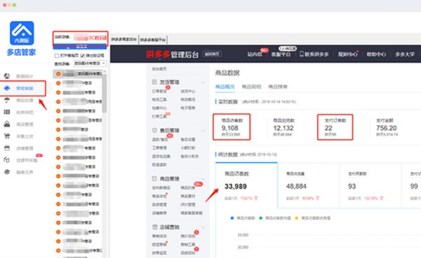 多店管家是电商人必备的非常多的人都在使用人用的一款智能网店管理软件,可以帮助你同时管理多个店铺,提供强大的数据统计功能,所有项目数据一目了然,包括每个店铺的总利润退款数等,还支持智能客服、采集上货、拍单拼团、智能选品、自动发货、自动上下架等功能,多平台货源上货无忧~