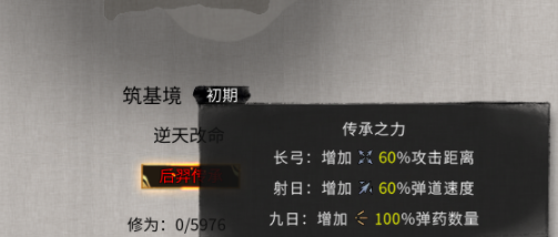 鬼谷八荒后羿传承MOD能够为鬼谷八荒的玩家们带来一个全新的逆天改命功效,补丁的作者“2505072593”在游戏中制作添加了一个后羿传承的技能,玩家使用后即可获得传承之力,通过这个技能可以轻松打出更高的伤害量,效果是攻击距离增加50%、弹道速度增加50%、弹药数量增加100%。