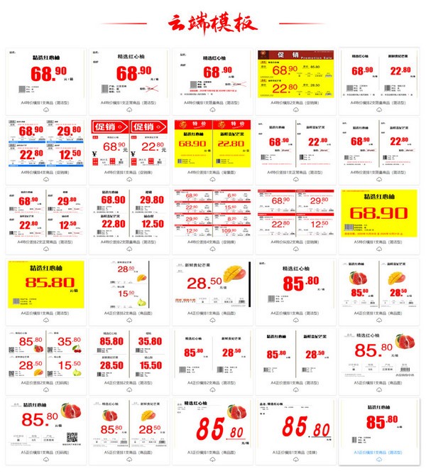 西银POP海报大师内置丰富的商场超市特价商品海报模板,非常实用的时候只需要将特价信息导入后就能快速制作出精美的海报,所见即所得。