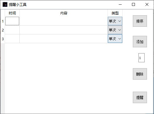 排序会默认按照时间进行排序,并且清除包含空内容的行。添加按钮即添加一行空行。 这里配合删除按钮使用,写入1、2、3、4即删除对应1、2、3、4行,写入0即全部删除,写入空(即啥都不写)为删除已经提醒过的单次提醒事项,每日提醒并不会被删除。