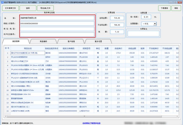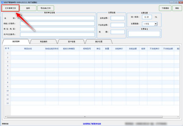 轻松开票清单导入助手(电子发票版)软件