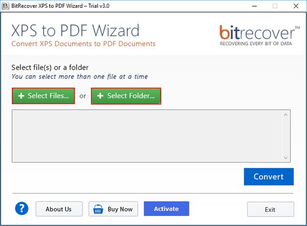 如果您想要的 XPS 文件受到病毒影响,那么您也可以使用此软件将 XPS 文件转换为 PDF,但 BitRecover 专家不建议转换受影响的 XPS 文件