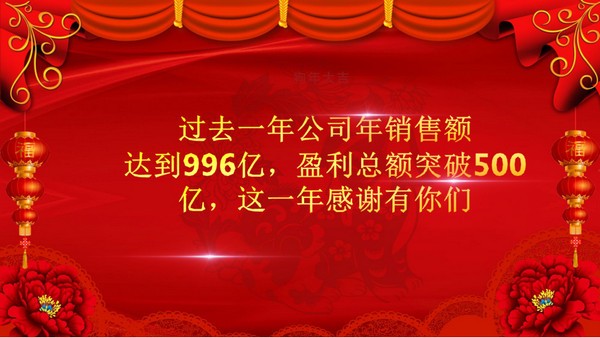 PowerPoint模板内容页,使用了古典传统花纹背景,搭配元旦晚会文案排版。另外使用了优秀员工照片、各类获奖团队照片等装饰。