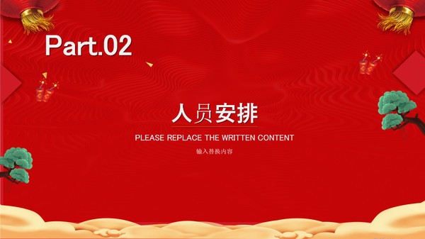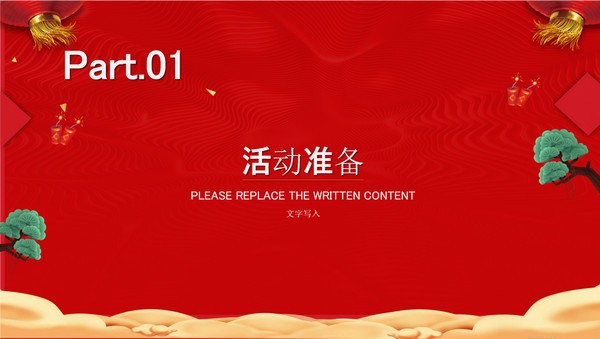 2022年春节活动少不了,相信不少小伙伴都已经在筹备了,今天分享给大家的这份2022春节活动策划PPT模板就是一个可以直接套用的春节活动流程PPT模板,包括了活动准备、人员安排、活动过程以及工作总结几大模块,大家也可以按照自己的想法自行添改内容。